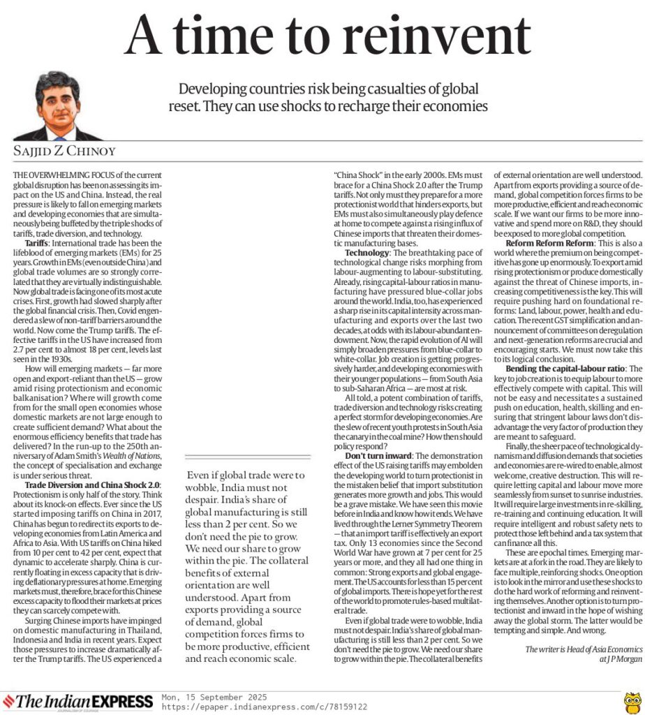 - Surging Chinese imports have impinged on domestic manufacturing in Thailand, Indonesia and India in recent years. Expect those pressures to increase dramatically after the Trump tariffs. The US experienced a “China Shock” in the early 2000s. EMs must brace for a China Shock 2.0 after the Trump tariffs.